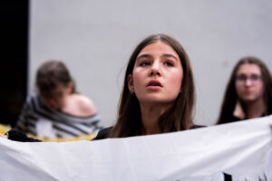 Once a month we invite girls aged 12–18 to the community space at Nowy Teatr for three-hour Sunday meetings that combine conversation, creative work, and shared meals.
